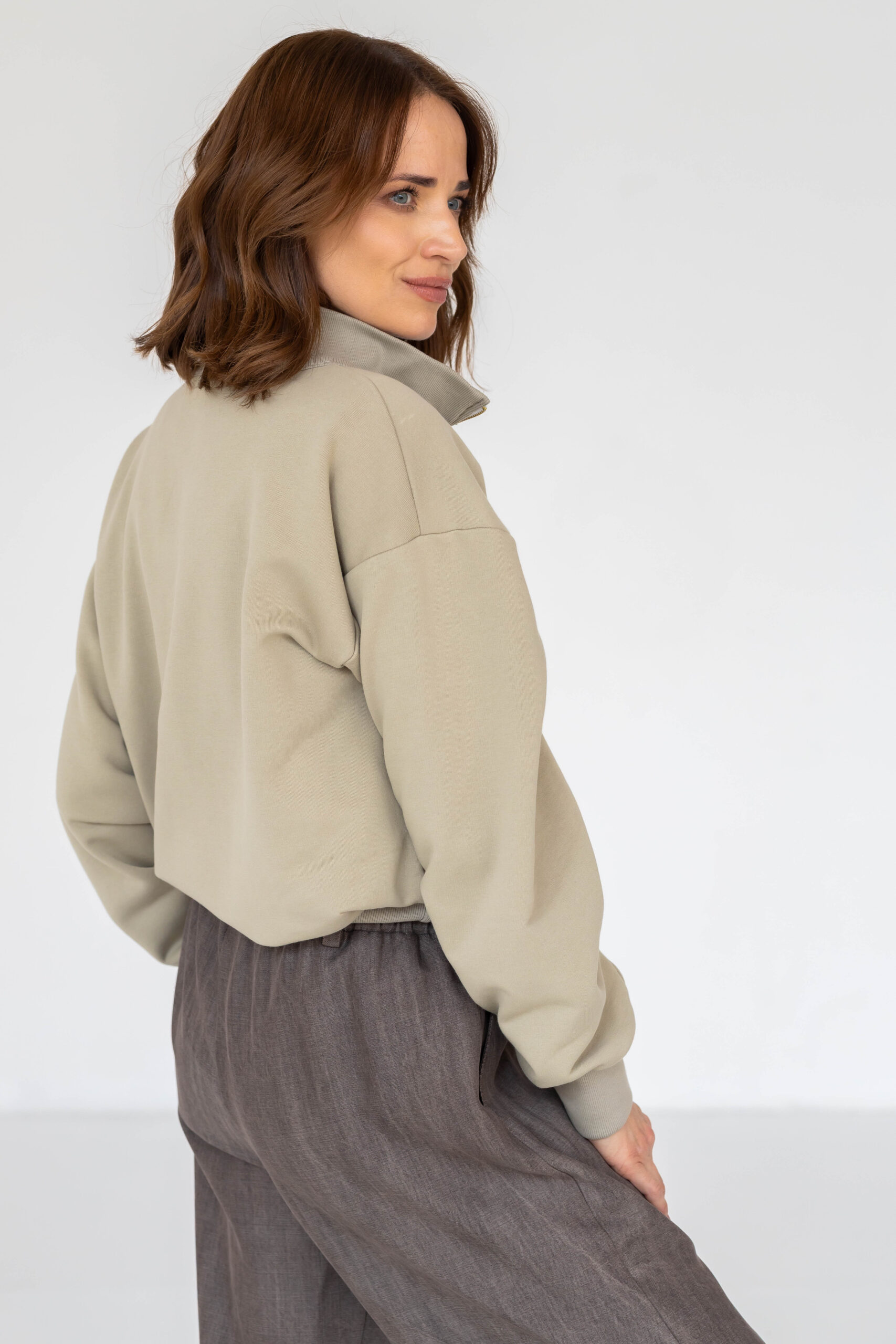Model zapinany na suwak, ze stójką, która nadaje całości sportowego charakteru i zapewnia dodatkowy komfort w chłodniejsze dni. Swobodny krój sprawia, że bluza świetnie układa się na sylwetce, a jej uniwersalny design pozwala łatwo łączyć ją zarówno z dresami, jak i bardziej casualowymi stylizacjami.