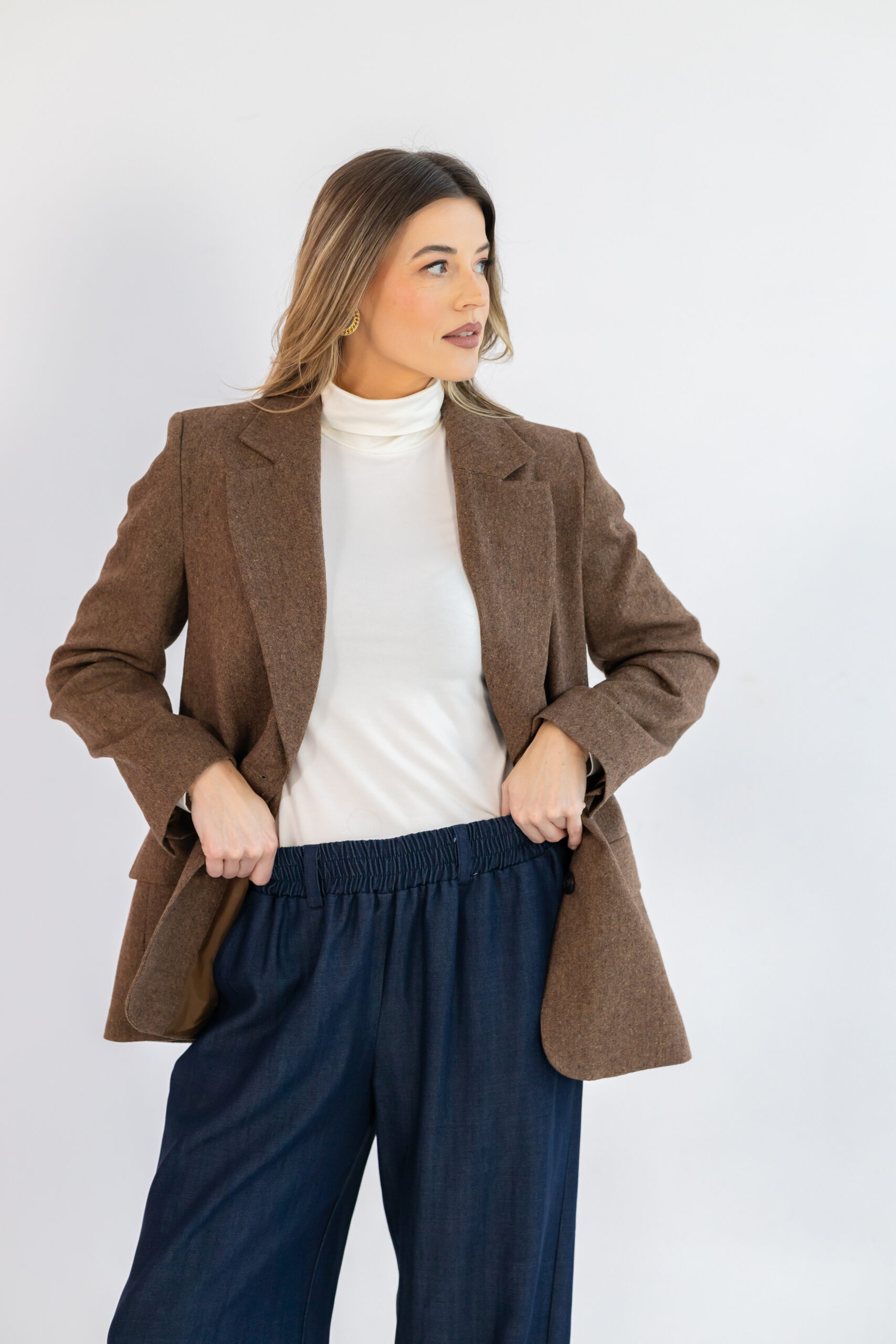 Uniwersalność: idealny do noszenia przez cały sezon – w połączeniu z dżinsami, spódnicą czy eleganckimi spodniami.