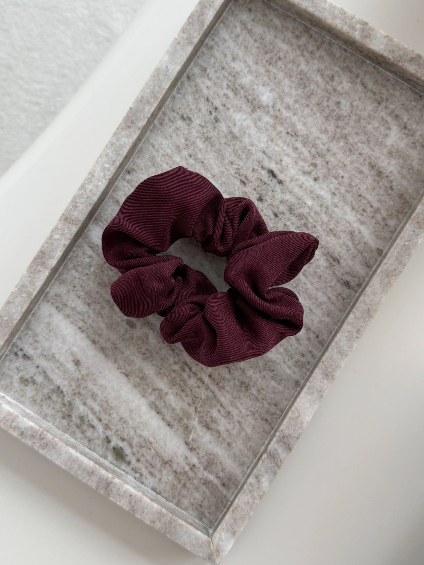 Głęboki, bordowy kolor dodaje całości elegancji i sprawia, że scrunchie świetnie sprawdzi się zarówno jako praktyczny dodatek do włosów, jak i stylowy akcent noszony na nadgarstku. To detal, który łączy funkcjonalność z kobiecą estetyką.