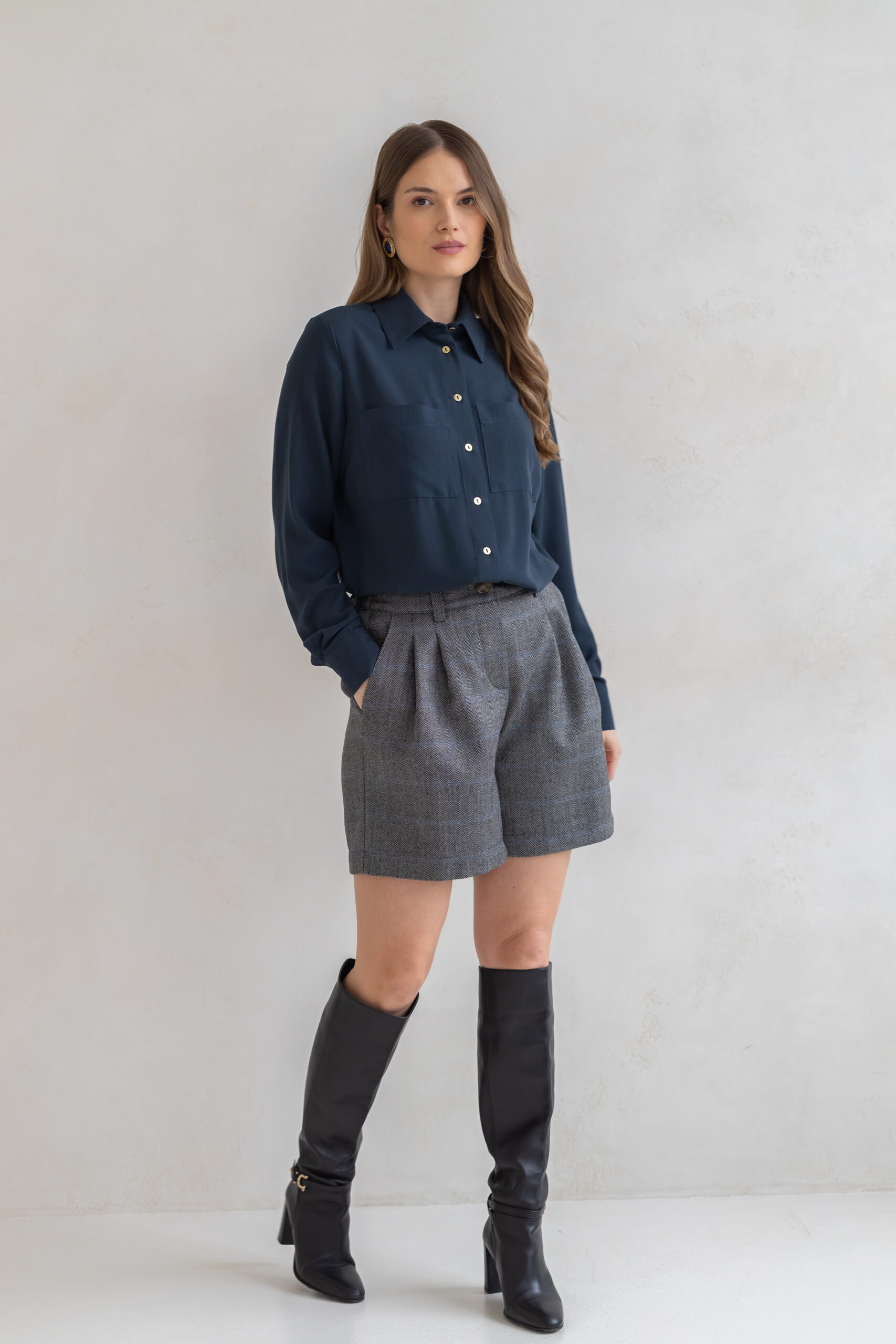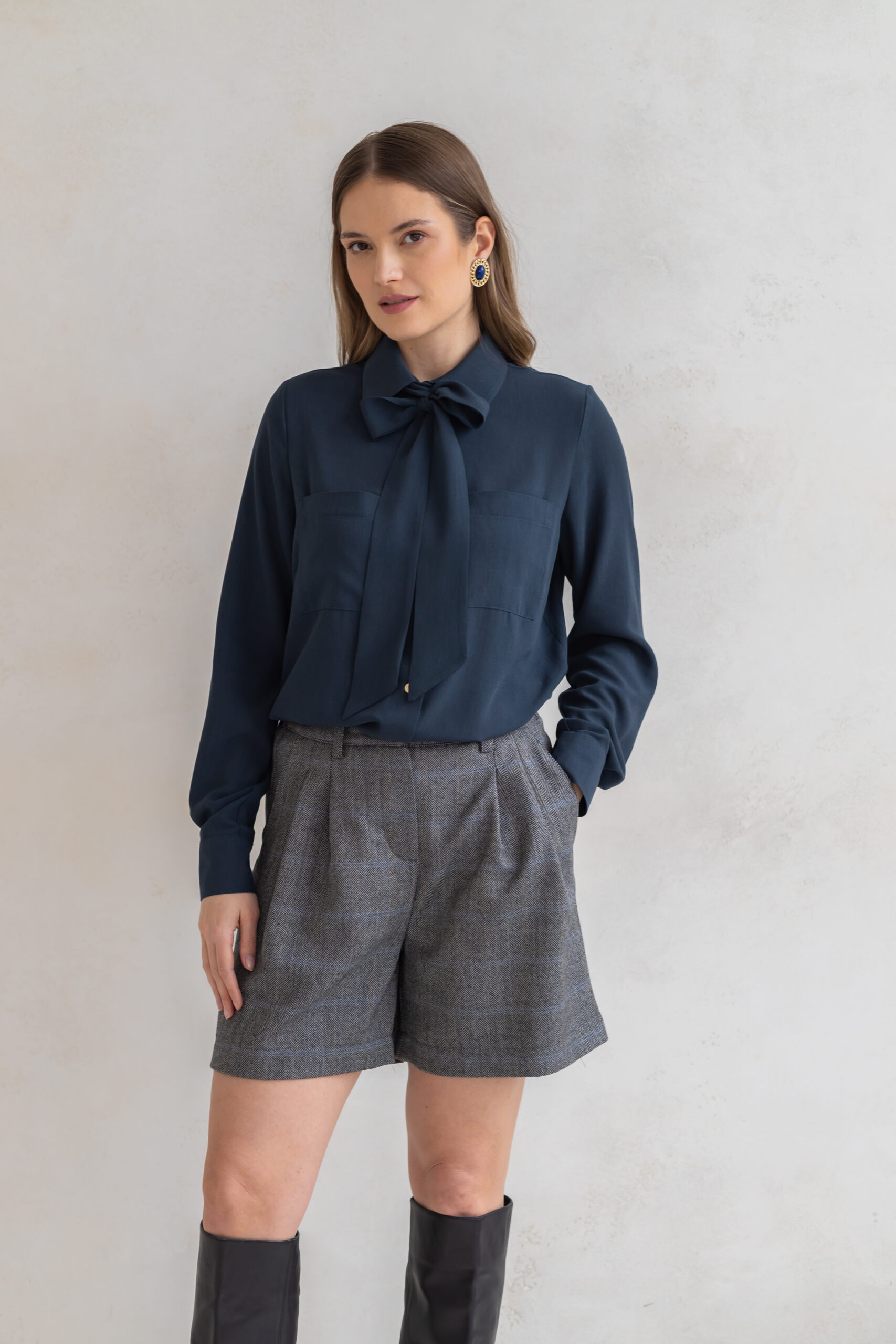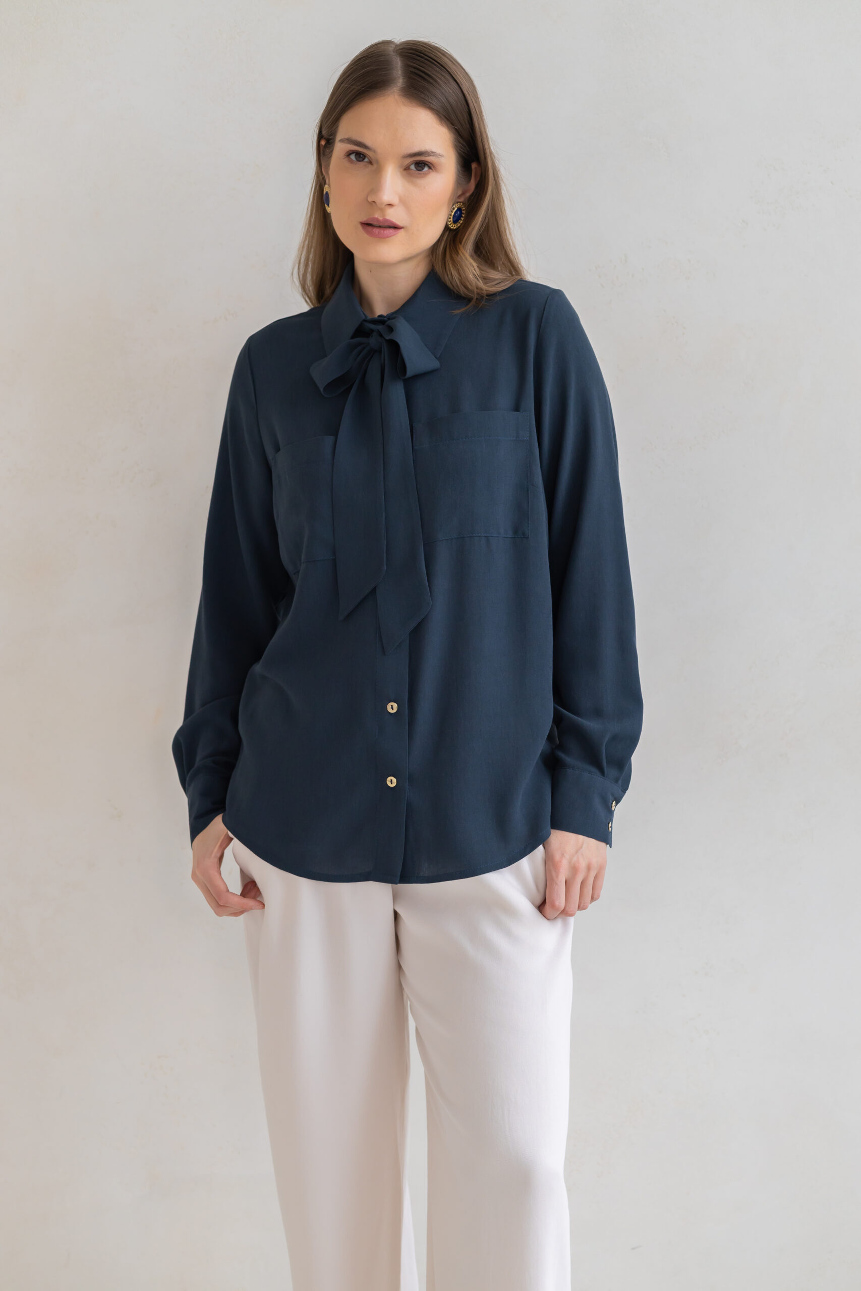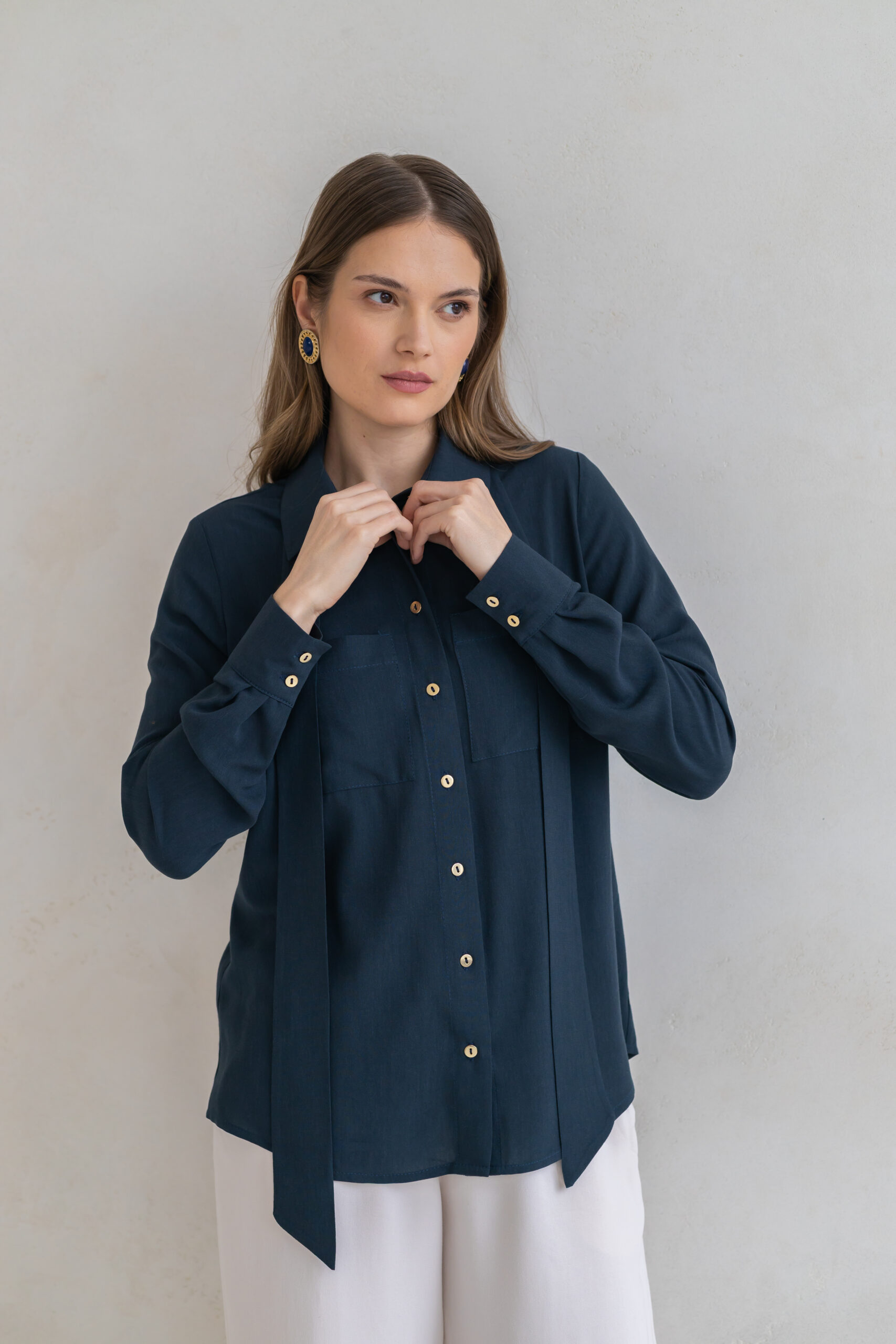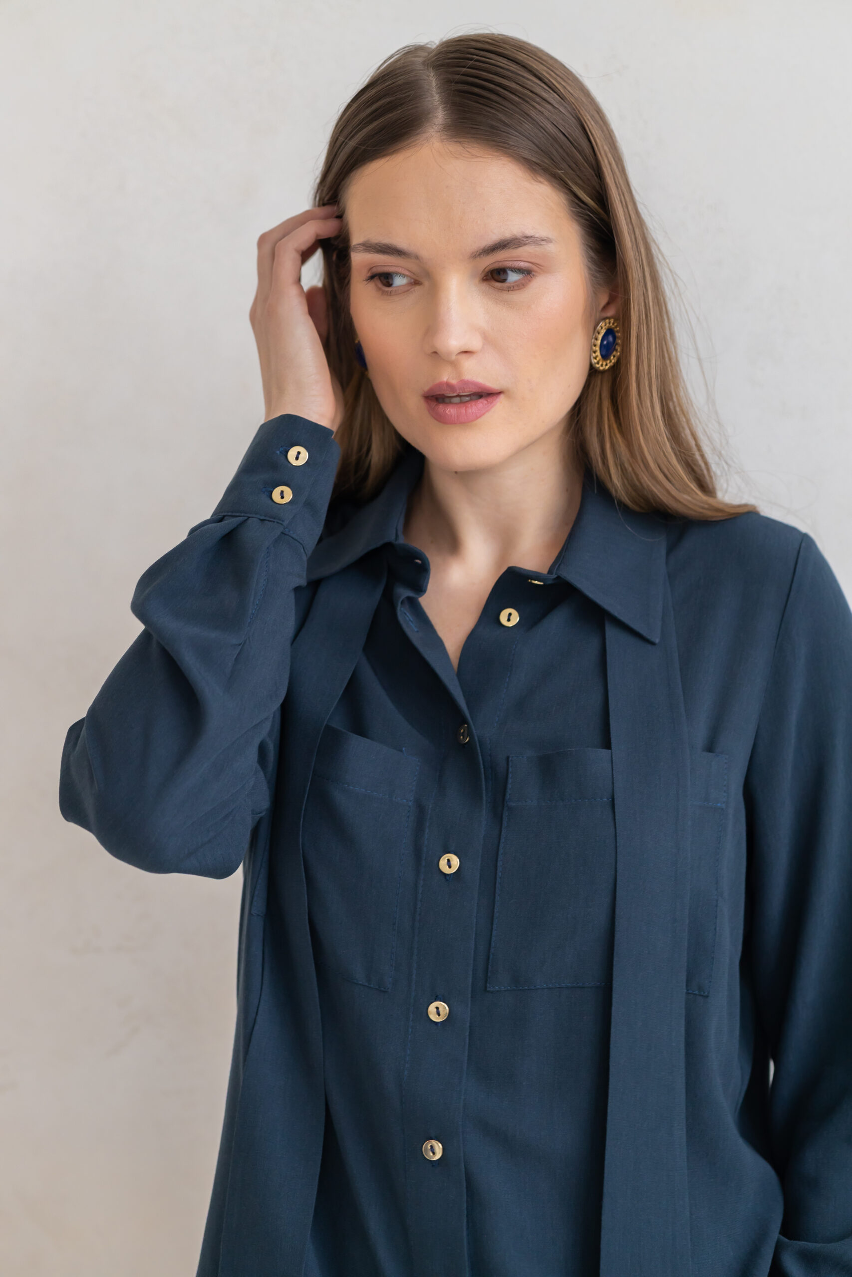 Koszula ESME to połączenie swobody formy z subtelną elegancją i modowym charakterem. Lekko oversize’owy krój nadaje sylwetce lekkości i niewymuszonego szyku, jednocześnie zapewniając komfort noszenia przez cały dzień.