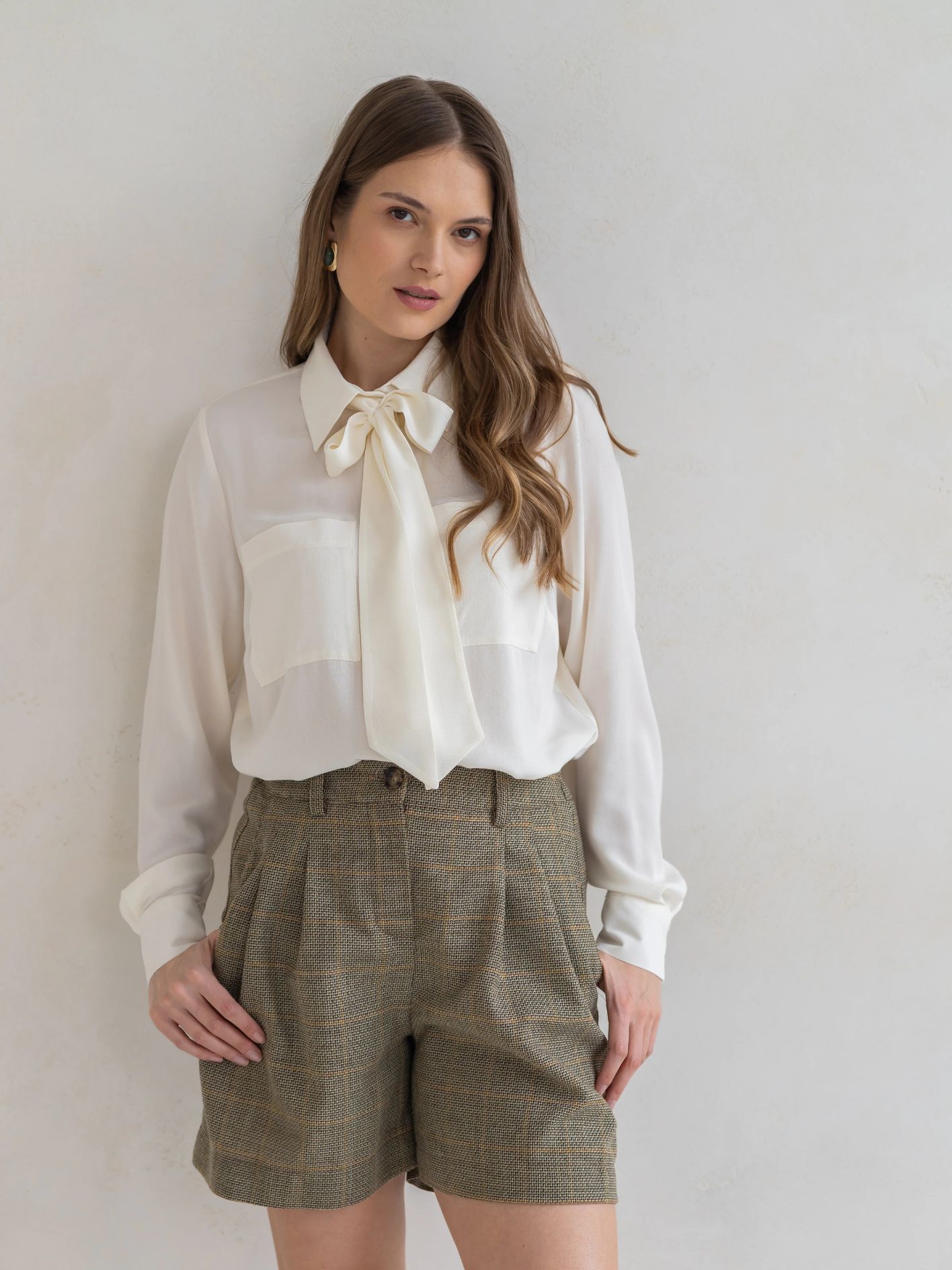 ESME została uszyta z wyjątkowej tkaniny będącej mieszanką 92% wiskozy i 8% wełny. Materiał jest miękki, przyjemny dla skóry i delikatnie otulający, a jednocześnie oddychający. Subtelna transparentność nadaje koszuli lekkości i kobiecego wyrazu.