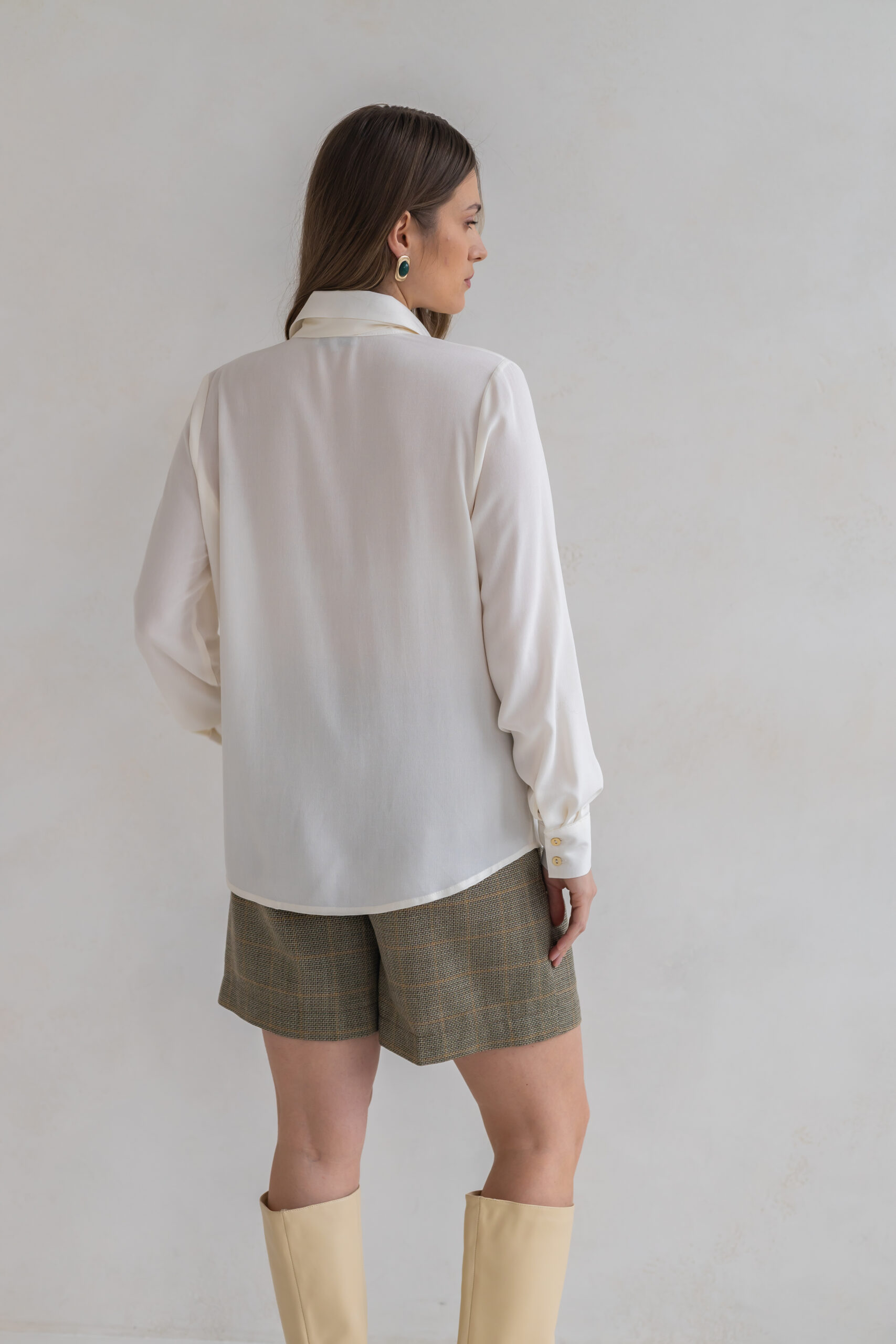 Koszula ESME to połączenie swobody formy z subtelną elegancją i modowym charakterem. Lekko oversize’owy krój nadaje sylwetce lekkości i niewymuszonego szyku, jednocześnie zapewniając komfort noszenia przez cały dzień.