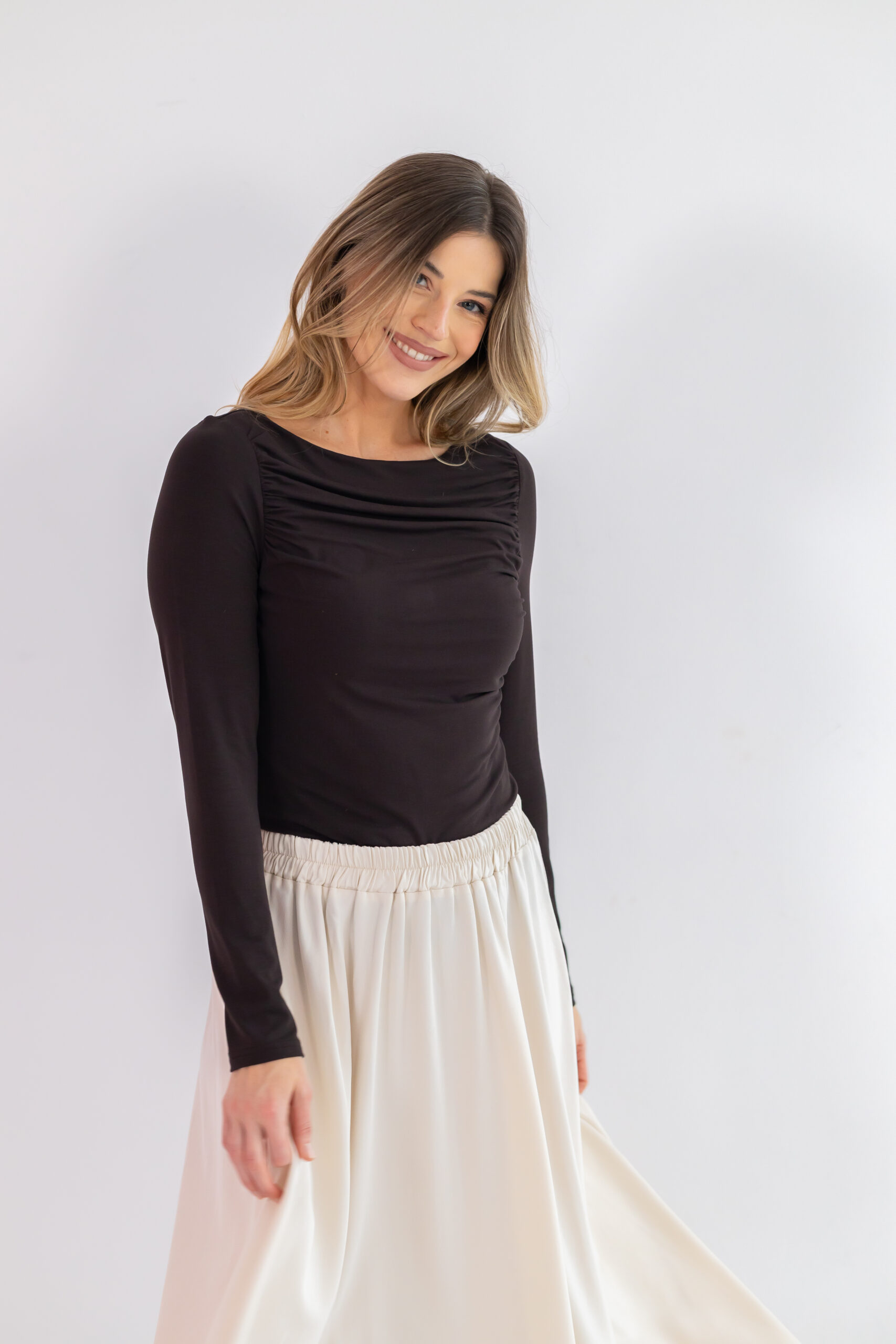 ASIA sprawdzi się idealnie jako baza do wielu stylizacji — z marynarką, kardiganem lub noszona solo. To także doskonała warstwa ocieplająca pod sweter w sezonie jesienno-zimowym. Model łączy nowoczesną elegancję, wygodę i funkcjonalność, stanowiąc niezbędny element garderoby dla kobiet ceniących starannie wykonane, uniwersalne podstawy stylu.
