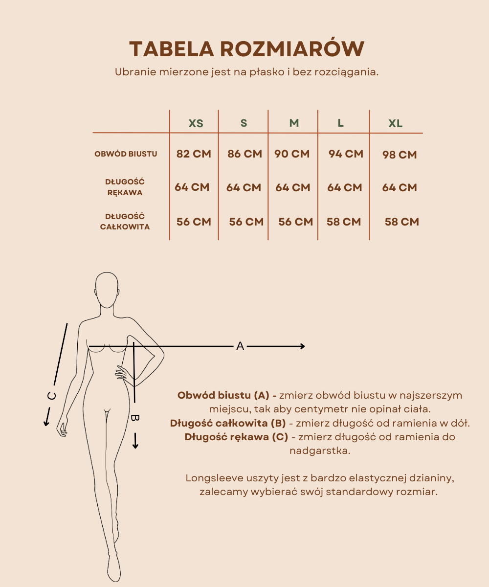 Longsleeve ASIA to ponadczasowy, kobiecy model wykonany z wysokiej jakości dzianiny polskiej produkcji (93% wiskoza, 7% elastan) posiadającej certyfikat OEKO-TEX.