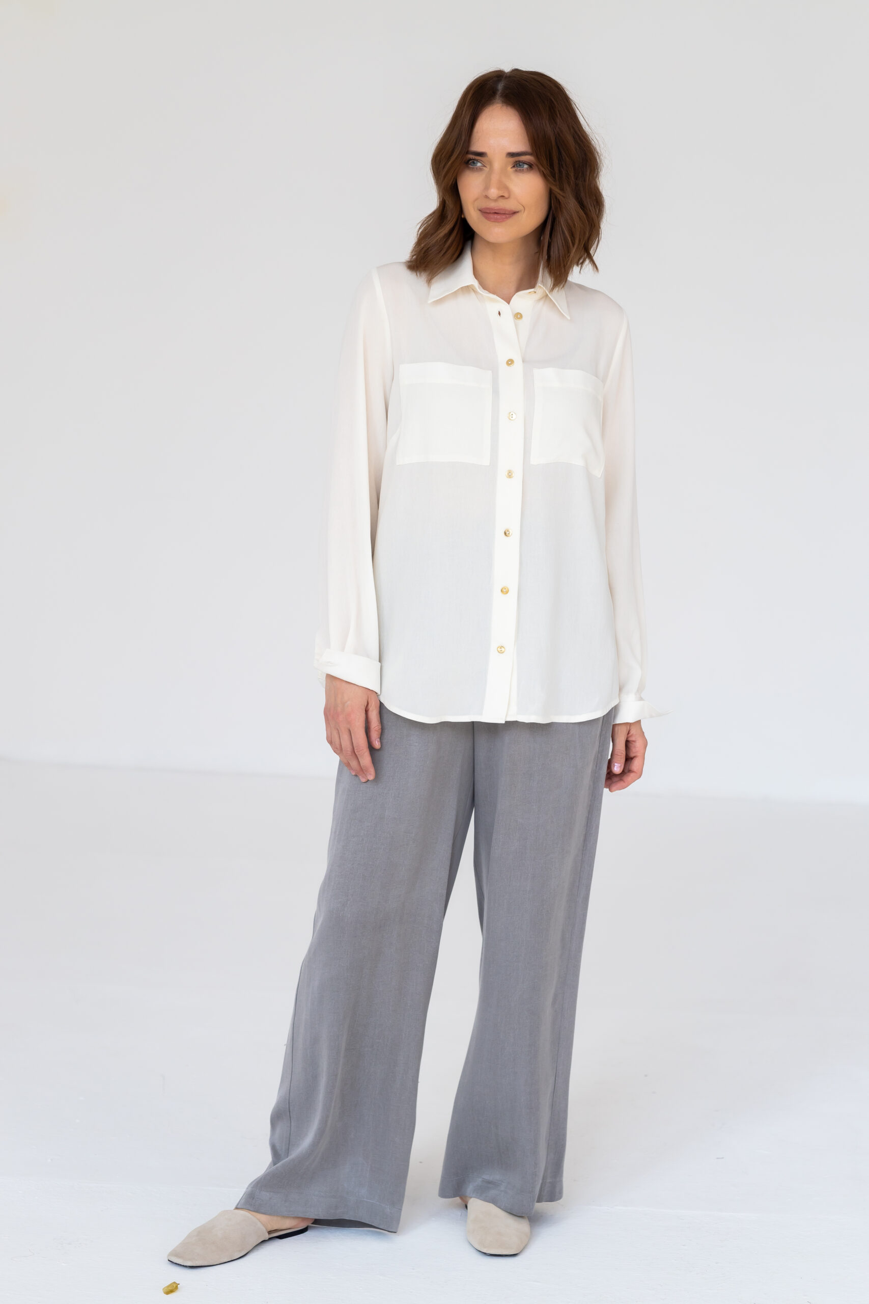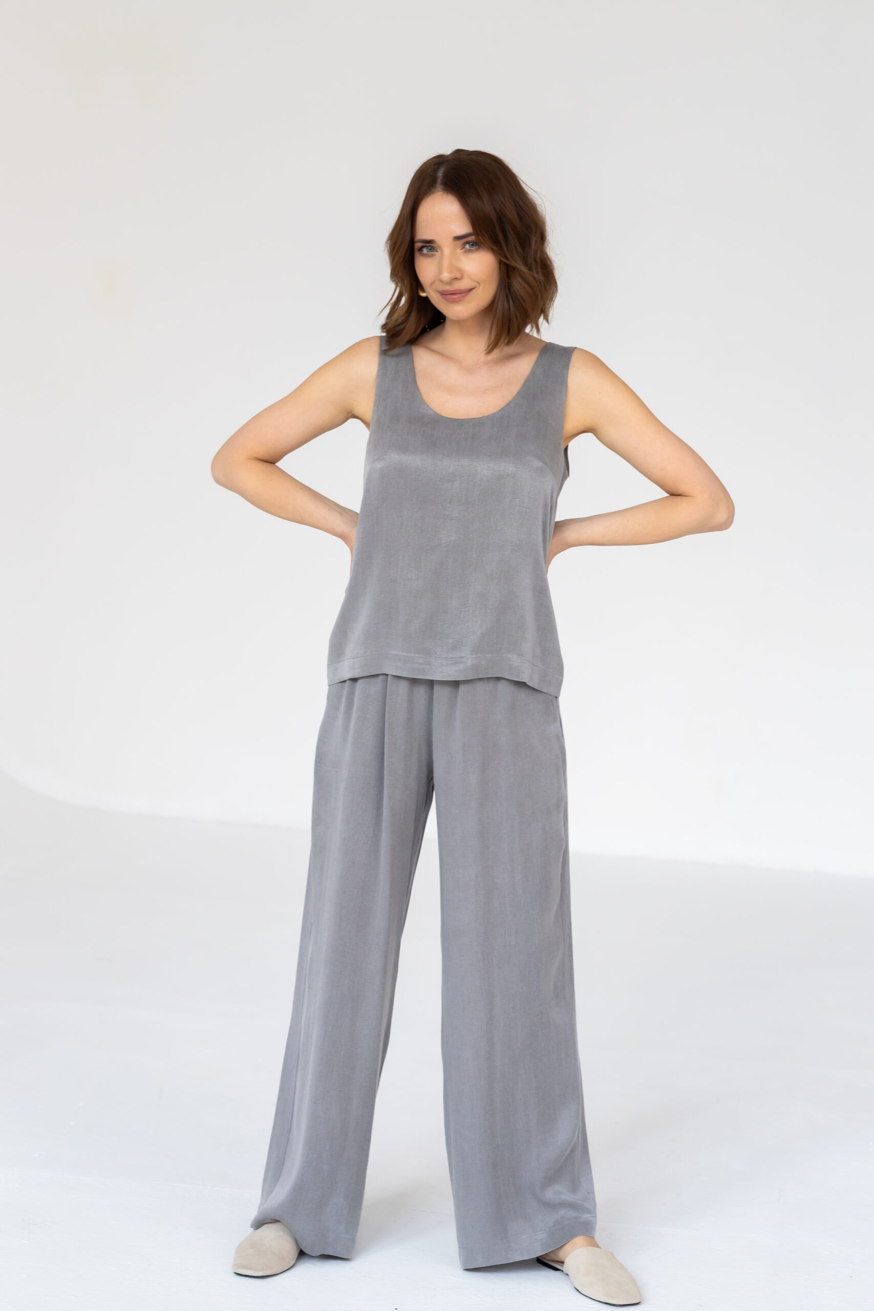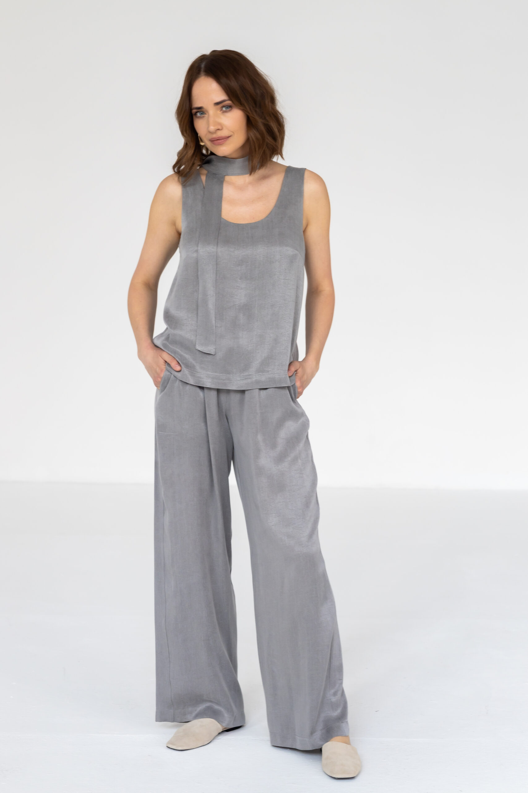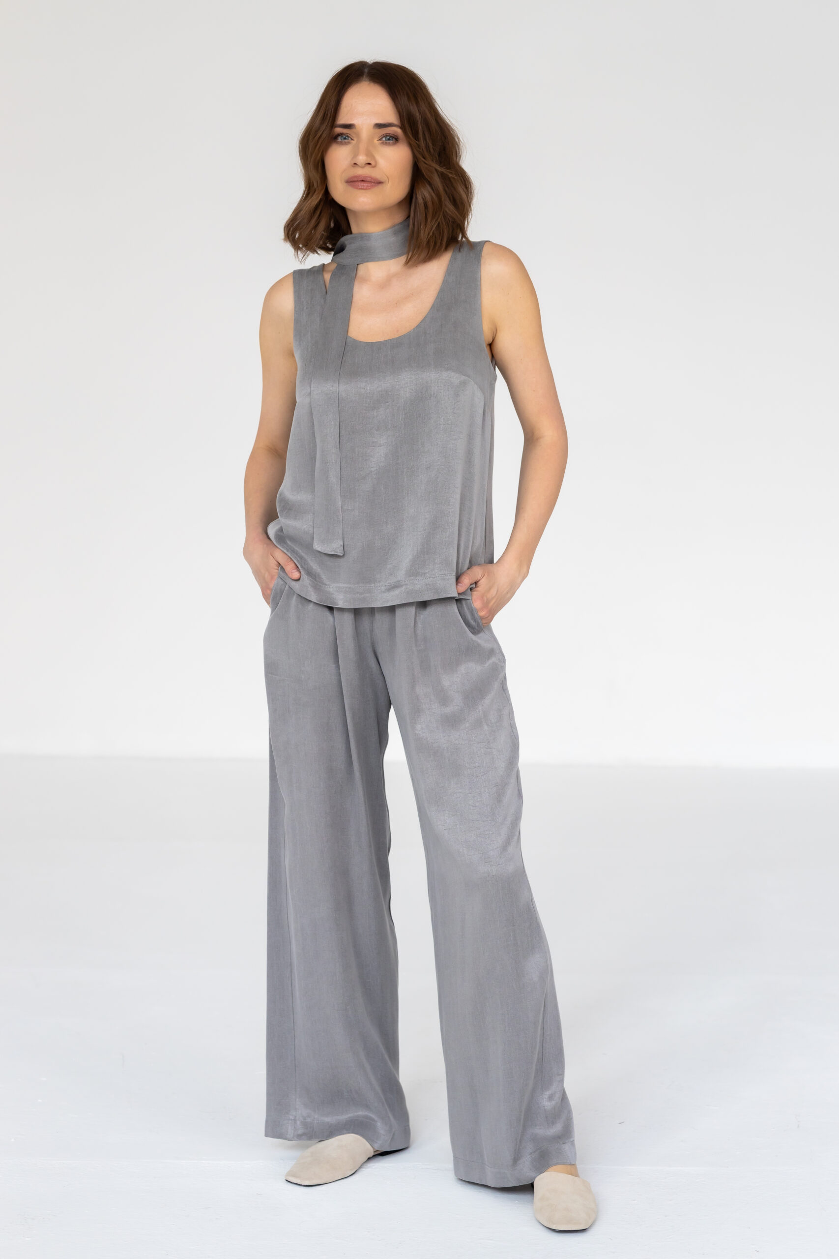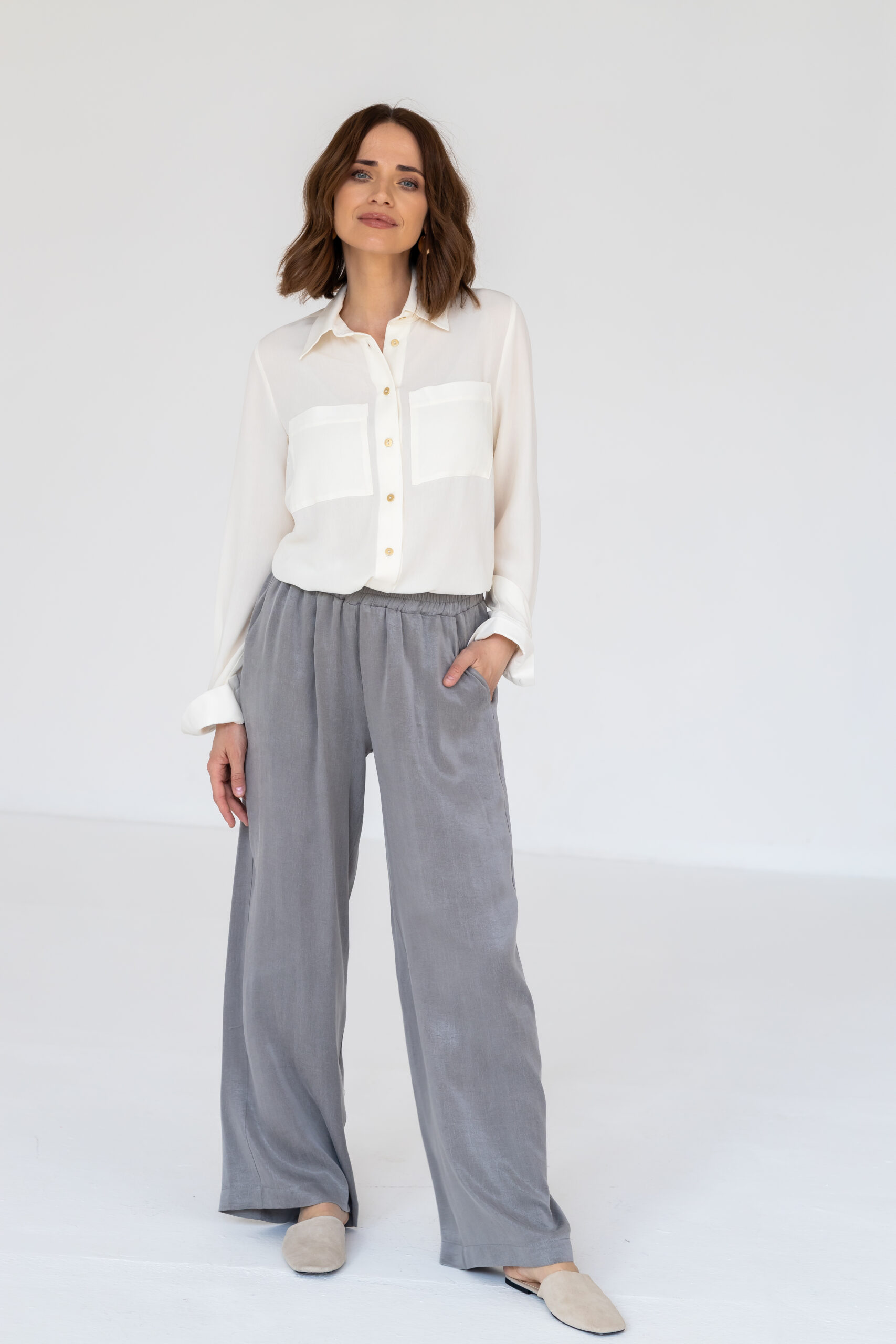 Szare spodnie AUDREY GREY to idealna propozycja dla kobiet, które szukają połączenia minimalizmu, komfortu i nowoczesnej elegancji. Uszyte z wysokiej jakości mieszanki wiskozy i lyocellu, są wyjątkowo miękkie, lekkie i przyjemne w dotyku, a do tego doskonale oddychają – dzięki czemu sprawdzą się zarówno w pracy, jak i podczas codziennych aktywności.