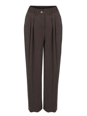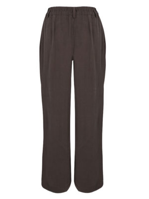 Uszyte z wysokogramaturowego tencelu, są miękkie, przyjemne w dotyku i przewiewne, co sprawia, że możesz nosić je komfortowo przez cały rok. Dwie zaszewki z przodu podkreślają sylwetkę, a rozszerzana nogawka dodaje im elegancji i swobodnego ruchu. Guma w tylnej części pasa zapewnia doskonałe dopasowanie do figury, a boczne kieszenie nadają im nieco luźniejszego, casualowego charakteru.