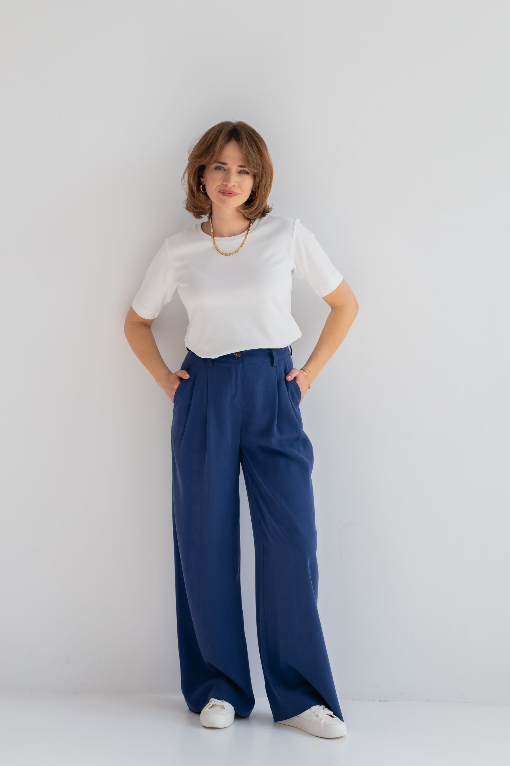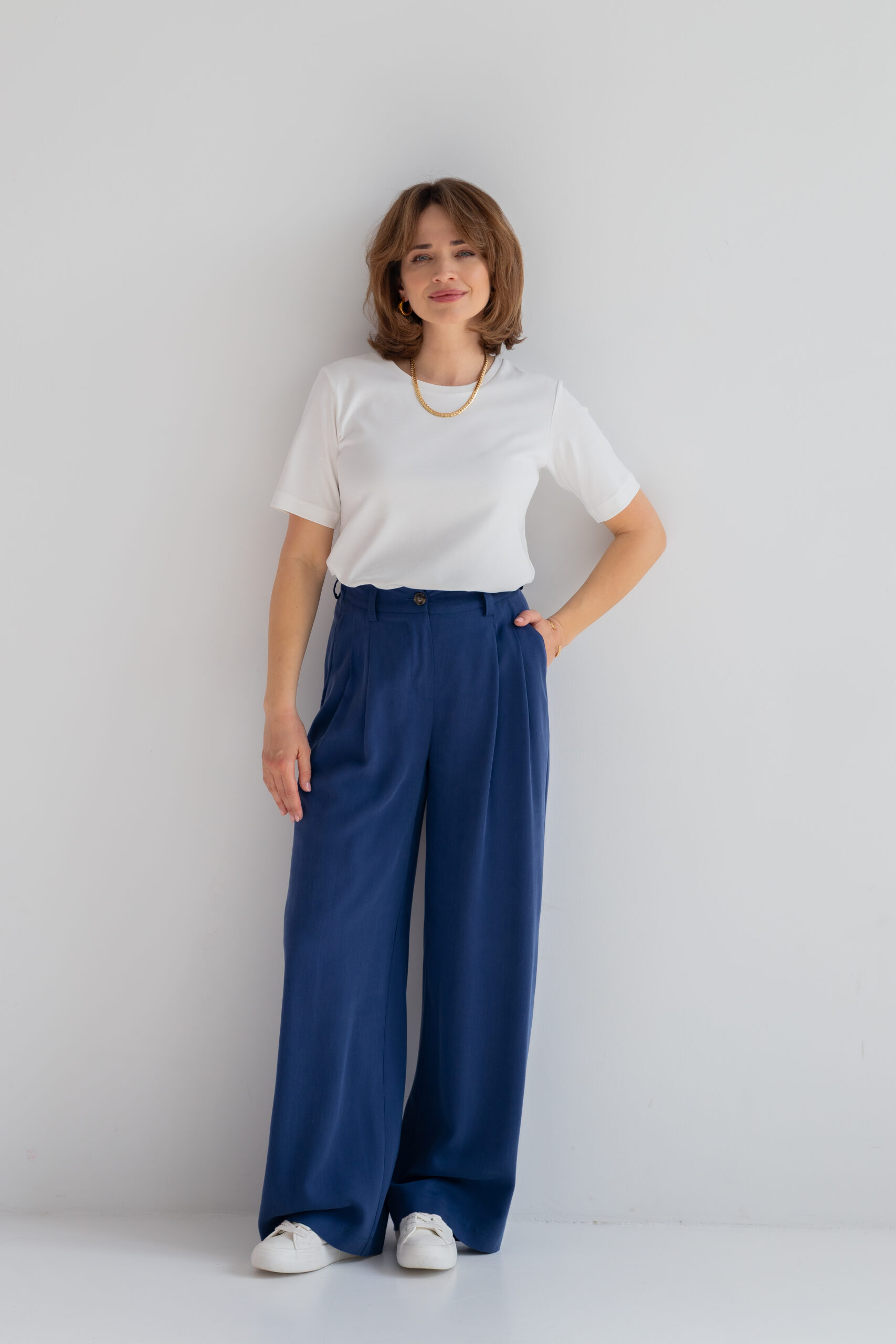 Uszyte z wysokogramaturowego tencelu, są miękkie, przyjemne w dotyku i przewiewne, co sprawia, że możesz nosić je komfortowo przez cały rok. Dwie zaszewki z przodu podkreślają sylwetkę, a rozszerzana nogawka dodaje im elegancji i swobodnego ruchu. Guma w tylnej części pasa zapewnia doskonałe dopasowanie do figury, a boczne kieszenie nadają im nieco luźniejszego, casualowego charakteru.